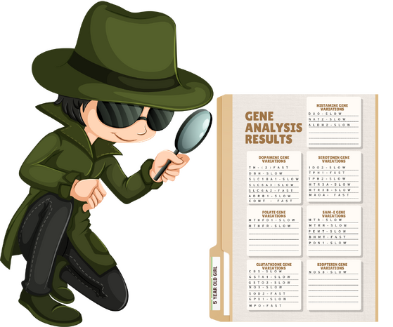 Like a master detective analyzing forensic evidence, we'll show you how we utilized critical functional medicine tests – Genetic Analysis, Neurotransmitter Profile, Food Allergy/Sensitivity Testing, Gut Health Testing, and more – to uncover the hidden factors affecting each child's brain health.